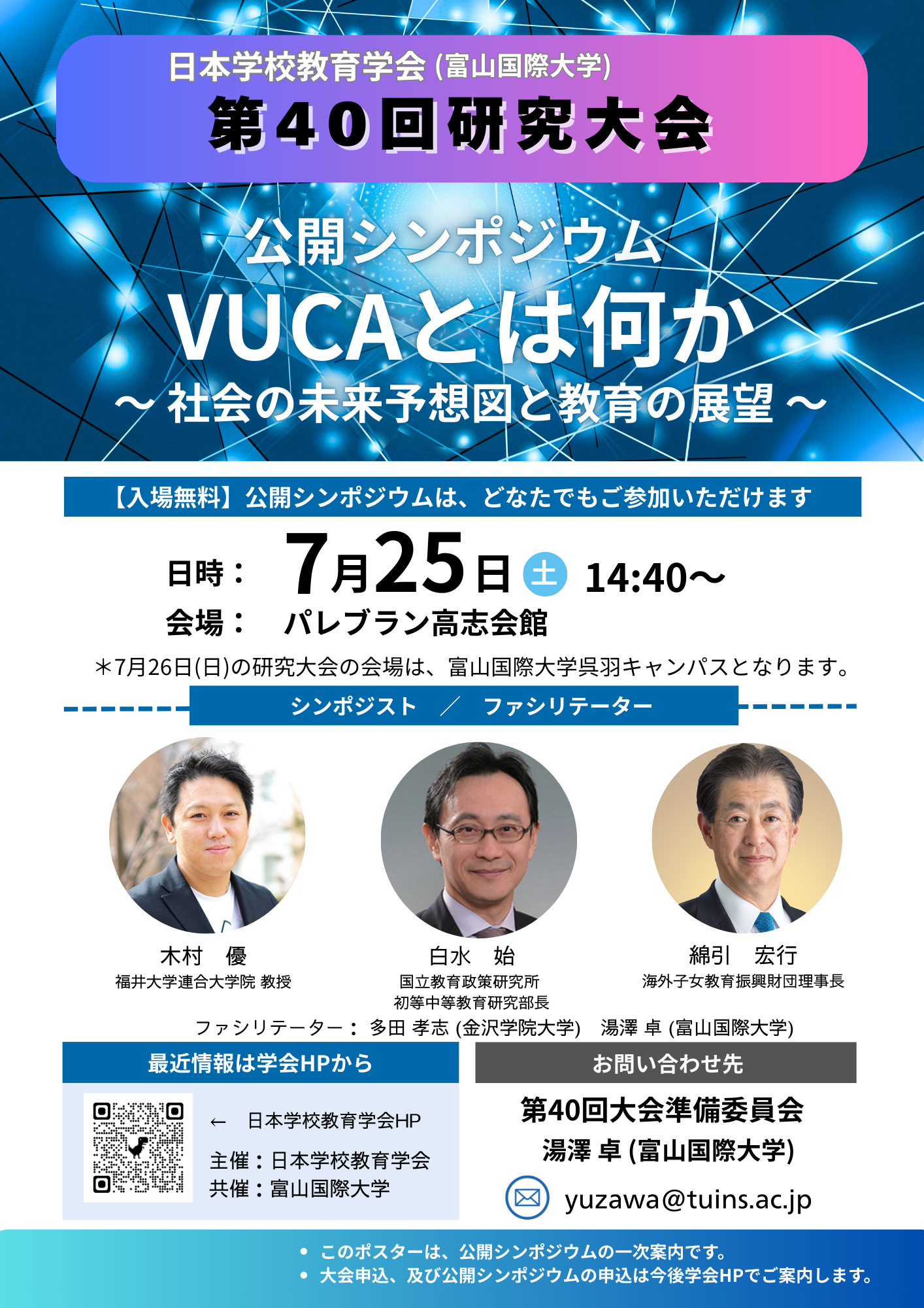 日本学校教育学会第40回研究大会(富山国際大学)開催のお知らせ